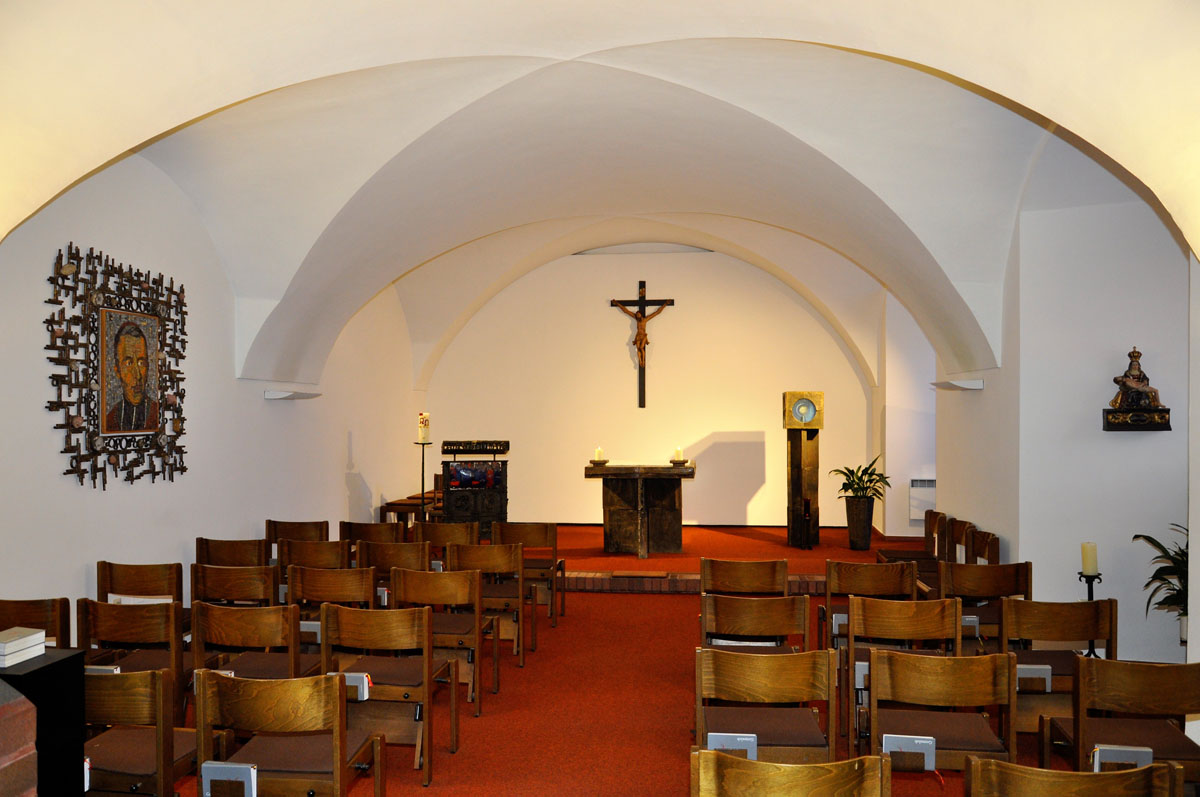 Unter der Sakristei wurde 1975 die Krypta als Wochentagskapelle ausgebaut.
