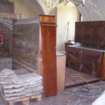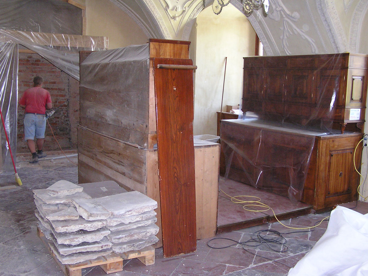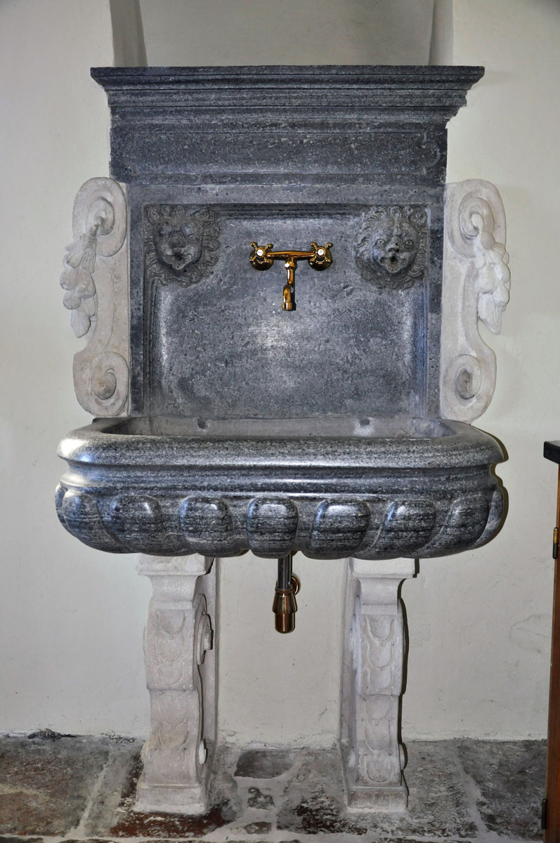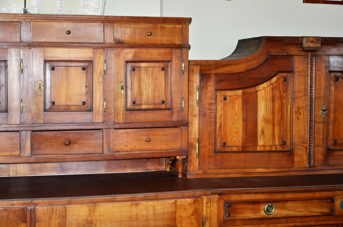 Zur Ausstattung einer Sakristei gehören Schränke zur Aufbewahrung der liturgischen Gewänder und sonstigen Gerätschaften, in katholischen Kirchen ist meist einer als Kredenz vorgesehen, auf dem die Gewänder der Priester bereitgelegt werden.