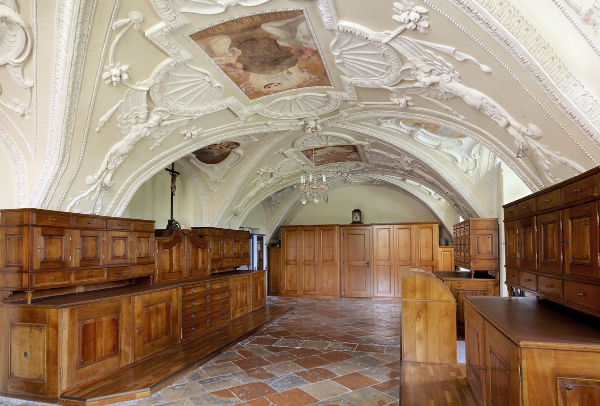 Die Sakristei der Wallfahrtskirche von Maria Taferl, die darüber befindliche Schatzkammer und die Bereiche der Krypta sind der älteste Bauteil aus dem Jahre 1661. Der Raum hat sein ursprüngliches Aussehen bis heute erhalten. Die Stichkappentonne trägt reichen frühbarocken Stuck (1664) von Carlo Coseglio. Die Malereien zeigen Engel mit Messutensilien sowie das Lamm Gottes. Die Sakristeischränke (1665) aus Kirschholz von Andreas Porrer aus Ybbs sowie ein Marmorlavabo (1677) sind heute noch erhalten.